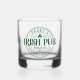 Dieses klassische Whisky-Glas enthält ein traditionelles irisches Pub-Schild, auf dem "Paddy's IRISH PUB Whiskey And Ale" in einem dekorativen grünen Rundschreiben steht. Perfekt für die St Patrick's Day Saison.