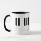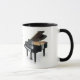 Diese Tasse kennzeichnet ein Bild eines Stutzflügelklaviers auf einer Seite und Klavierschlüsseln auf der anderen Seite. In der Mitte ist ein kundengerechter Raum, zum Ihres Namens oder Mitteilung zu setzen.