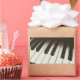 Stickers mit einem musikalischen thematischen Foto mit nahen Bildern von Klaviertasten. Stilvoll und elegant.