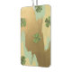 Ein pastellfarbenes Bild mit aquamarinem Hintergrund und einigen kleinen grünen Kleeblatten. Der Hintergrund ist ein tiefes Gold mit weichen Pinselstrichen. Die Kleeblatten sind weich grün und im Hintergrund verstreut. Das Bild ist sauber und in Pastellfarben gestrichen.