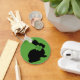 Schwarze Silhouette eines Hasen mit einem Kleeblatt-Bogen.