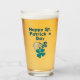 Kleeblatt Clover Irish Happy St. Patrick's Day Bierglas. Ein Happy St. Patrick`s Day Text mit irischem Kleeblatt zeichnend zum Glück. Sie können den Text ändern.