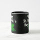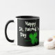 Kleeblatt Clover Irish Happy St. Patrick`s Day Tasse. Ein Happy St. Patrick`s Day Text mit grünen irischen Kleeblättern für Glück auf schwarzem Hintergrund. Sie können den Text ändern.