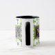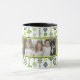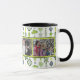 St. Patrick's Day Tasse. Personalisieren Sie dieses charmante Design für ein glückliches Elternteil oder Großeltern, um ihren Kindern zu zeigen. Ideal für eine frische, moderne Ästhetik. Niedliche Kleeblätter, vierblättriges Kleeblatt, Blume und Blätter, die in Streifen angeordnet sind, bilden dieses reizvolle Muster. Schöne Frühlingszeit Grüntöne und Gelb mit gedämpfter Blues machen dies zu einem lebendigen und dennoch anspruchsvollen und auffälligen Design. Weißer Hintergrund. Passen Sie diese Tasche mit sechs (3) Fotos an. Personalisieren Sie den Text vorne und hinten. Weißer Hintergrund.