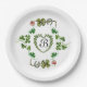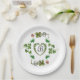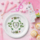 KLEEBLATT HERZ, BLUME, GRÜNES BLUMENMONOGRAMM weiß Pappteller