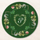 KLEEBLATT HERZ, PINK-BLUME, GRÜNES BLUMENMONOGRAMM RUNDER PAPPUNTERSETZER