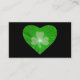 Modernes Design mit einem "glänzenden", "glitzernden", grün-weißen Herz, einem Kleeblatt im Inneren, schwarzem Hintergrund und weißem Text. Visitenkartenvorlage mit individualisierbarem Design für Sie, um mit Ihrem eigenen Text, Bildern und Ideen zu personalisieren. Bitte beachten Sie, dass es sich um ein gedrucktes Bild handelt, das mit Originalfotos und Digitaltechnik erstellt wurde, es nicht glänzt oder echte Glitzern enthält.