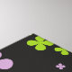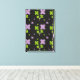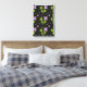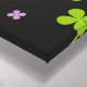 Originelles, nahtloses Blumenmuster, lila und grüne Kleeblätter auf schwarzem Hintergrund.