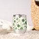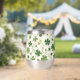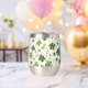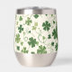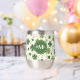 Dieser Weinwäscher hat ein lustiges irisches Muster aus verschiedenen grünen Kleeblättern und Wirbel auf weißem Hintergrund. In der Mitte befindet sich ein rund passendes grünes Kreissagebanner mit Ihrer dreiteiligen Monografie. Stolz zeigen Sie Ihre irische Seite!