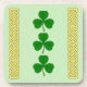 Traditionell benutzte St. Patrick das dreiseitige Kleeblatt, um die Christliche Dreifaltigkeit zu veranschaulichen. Obwohl die Authentizität dieser Tradition in Frage gestellt wird, ist das Kleeblatt zu einem Symbol Irlands geworden. Hier erscheint ein Kleeblatt-Trio zwischen einem Paar keltischer Knüpfarbeit-Bands.