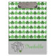 Dieses Design ist mit grünen Kleeblättern und einem Pferd mit Hufeisen gestaltet.