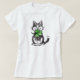 Eine Schwarzweiss-Katze, die ein drei-Blätter getriebenes Kleeblatt in seinem Mund, für St Patrick Tag oder gerade für Spaß hält!
