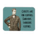 Dieser Magnet zeigt ein altes Bild eines gut gekleideten Mannes, mit dem Zitat: "Schränke sind für Kleidung. Fantastische Kleider." Die Hintergrundfarbe und der Text können nach Bedarf angepasst werden.