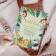 Ein Safari-Thema im Dschungel lädt mit wilden Tieren und Urwaldpflanzen ein. Farben und Text können personalisiert sein.