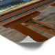 Hochwertige Grafik eines Vintagen Gemäldes eines kleinen Bootes auf einem Kai, das im Hintergrund sichtbar ist. Dieses Design ist perfekt für eine breite Produktpalette für diejenigen, die nautische und klassische Kunst.