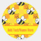 Niedliche Bienenfliegen. Individuelle Aufkleber mit gelb-orangefarbenem kariertem Muster im Hintergrund. Text bearbeiten, um ihn anzupassen. Party Dekor und Geschenkidee für Kinder.