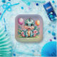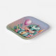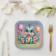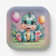 Eine charmante Aquarellillustrierung eines süßen Babydinosauriers mit einem fröhlichen Lächeln, das auf einem Wiesen mit lebhaften tropischen Blume sitzt. Zwei fröhliche Ballons umrahmen den Dinosaurier und schaffen ein reizvolles und unschuldiges Design vor einem knusprigen pastellfarbenen Hintergrund - ideal, um Ihre bevorstehende Babydusche mit Stil und Wärme zu feiern.
