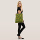 Nahtlose Blumenmuster mit kleinen gelben Blumen und türkisfarbenen Punkten auf dunkelgrünem Hintergrund.