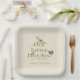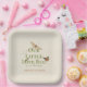Elegante, geschlechtsneutrale kleine Liebe Babydusche / Sprinkle Party Papier Teller, mit Vintagen Insekten auf einem antiken Papier Hintergrund. Personalisieren mit Namen. Karo der Kollektion für die Produktkoordination.
