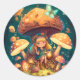 Kleine Mädchen-Elfe unter Pilzen Runder Aufkleber