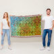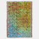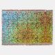 Grafische Kunst mit verschwommenen bunten Quadraten in klaren Grün, Orange, Rot, Gelb, Blau und Braun mit leichtem Relief oder Tiefe ähnlich wie Fliesen mit dunkelroten Farbtönen.