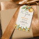 Fügen Sie ein niedliches Geschenketikett für Ihre Babyduschfavoriten hinzu. Dieses Geschenk-Tag zeigt eine Aquarellblume orange Äste.