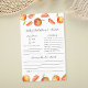 Erstellen Sie dauerhafte Erinnerungen und teilen Sie mit diesem kleinen Süsse Baby Shower Predictions & Advice Game! Diese Karte ist perfekt nach einem zauberhaften Zitrusthema gestaltet und ist ein unterhaltsamer und interaktiver Weg für die Gäste, um Vorhersagen über die Ankunft des Babys zu treffen und den künftigen Eltern ihren besten Rat zu geben. Mit Aquarellorangen und Grapefruitakzenten verleiht dieses bezaubernde Spiel jedem Baby-Duschbad eine angenehme Farbe und Freude. Von Kristine Lee entworfen und illustriert - www.kristineleedesigns.com