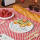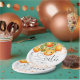 Kleine Süsse orangefarbene Babydusche Teller mit niedlichem, kleinen Gesicht auf orangefarbenem Hintergrund. Diese hübschen kleinen Süsse Babydusche Teller können mit Text personalisiert werden.