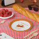In diesem Herbst wärmen Sie mit einem hübschen Baby-Duschkopf-Teller mit weichen Pfirsichstreifen, einem süßen Stück Kürbiskuchen und flatternden Herzen in der Umgebung auf. Mit der skurrilen Nachricht "ein Süsse Kuchen backt" vorne und Mitte.