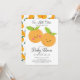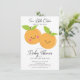 Kleine Süssen sind auf dem Weg Babydusche Design mit einem hübschen kleinen Clementine Orangen Set auf einem neutralen weißen Hintergrund. Dreh unsere Einladung nach hinten, um einen koordinierenden Rücken mit einem orangefarbenen Muster zu sehen. Besuchen Sie unseren Shop, um unsere zauberhafte Süsse Zwillinge Design Kollektion zu sehen.