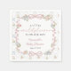 Diese elegante Serviette für Baby-Shower-Partys namens „Little Wildflower“ zeigt ein romantisches, vintage Blumendesign mit zarten rosa Schleifen, akzentuierten blauen Bändern und filigranen botanischen Details, die von Erbstück-Tapeten inspiriert sind. Die elegante Schrift „Baby“ in Kombination mit klassischer Serifenschrift schafft eine zeitlose, feminine Ästhetik, die Ihre Babyparty-Tischdekoration sofort aufwertet.