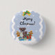 Ein wertvoller Weihnachtsknopf mit einem niedlichen kleinen braunen Bär in Schlafanzug, der auf einem farbenfrohen Steppchen mit Geschenken sitzt. Ein kleiner Lebkuchenjunge sitzt auf seiner Decke, während sie alle auf einer Wolke durch den schneebedeckten Himmel schweben. Ein kleiner Bogen und "Frohe Weihnachten" machen das zu einem Lieblingknopf für jeden.