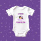 Niedliches kleines Mädchen mit schwarzem Haar, violettes Kleid, Blume, Herz und Text LITTLE MISS CHARMING