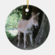 Ein niedlicher Esel, stehend neben einem großen Baum an einem sonnigen Tag.