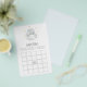 Dieses schlafende kleine Elefantenjunge Baby Bingo Spiel ist perfekt für eine einfache Babydusche. Das moderne Design besticht durch ein modernes und niedliches Safari-Tier in Aquarellfarbe, das auf einer weichen Wolke mit bunten gelben Sternen schläft. Personalisieren Sie die Rückseite der Karte mit dem Namen der Mutter-zu-sein-und das Duschdatum.