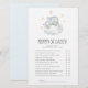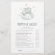 Dieses kleine Elefantenspiel "Mama oder Papa" ist perfekt für eine einfache Babydusche. Das moderne Design besticht durch ein modernes und niedliches Safari-Tier in Aquarellfarbe, das auf einer weichen Wolke mit bunten gelben Sternen schläft. Sie können die Fragen des Spiels personalisieren, indem Sie auf den Button "Anpassen" klicken.