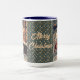 Weihnachts-Tasse mit einem Engel, der an Heiligabend in einem Fenster mit einem kleinen Reh neben ihr guckt. Das Reh trägt alle Geschenke für die Kinder. Es ist eine großartige Weihnachtsfeier für Kinder jeden Alters.