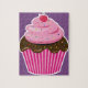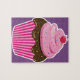 Vector Illustrationskleinen kuchen mit Kirsche, geschmolzener Schokolade und bunter Spitze. Kundengerechte Hintergrundfarbe. Fühlen Sie sich frei, Ihren eigenen Text zu addieren.