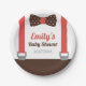 Party liefert den PapierTeller, der entworfen ist, um wie eine Herrausstattung auszusehen. Sie kennzeichnet ein dunkles Braun bowtie mit weißen Tupfen und ein Paar Rotbügelhosenträger. Vervollkommnen Sie, damit Mama ist, wer ein Baby erwartet! Personifizieren Sie leicht mit Ihrer Babypartymitteilung!