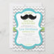 Es ist eine Schnurrbart-Babydusche! Diese Einladung enthält einen lustigen Hipster-Schnurrbart mit aquamarinem Rahmen und grauem Zickzack Hintergrund. Oh Junge!