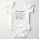 Fügen Sie diesen niedlichen kleinen Babybodyanzug für Erdnüsse zu Ihren Geschenkideen für die Babydusche hinzu. Dieses Design zeigt eine Aquarellillustrierung eines schlafenden Elefanten auf einer blauen Wolke umgeben von goldenen Sternen.