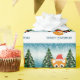 Eine niedliche Winterszene eines Fuchses, der eine Weihnachtsmannmütze im Schnee trägt, ist leicht personalisiert.