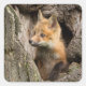 Kleiner Rotfuchs in einem Baumhaufen Quadratischer Aufkleber