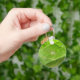 Dieser wunderschöne Schlüsselanhänger zeigt ein detailliertes Foto einer kleinen Gartenspinne, die auf einem Brokkoli-Blatt sitzt. Das winzige Wesen ist fast transparent. Das Foto ist so detailliert, dass man sogar ein paar Stränge des Spinnennetzes sehen kann.