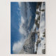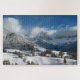 Puzzle des kleinen Dorfs Sankt Magdalena in Villnoess Tal mit den Geisler Dolomit-Bergspitzen im Hintergrund umfaßt im Schnee in der Winterjahreszeit in Südtirol, Italien.