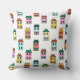 Ein sich wiederholendes Muster besteht aus acht kleinen farbenfrohen Häusern.