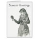 Personalisieren Sie diese schöne Retro Weihnachtsgrüße-Karte eines kleinen Mädchens mit einem Lebkuchen.