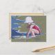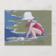 Kleines Mädchen mit Hut am Strand mit Wellen Postkarte