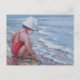 Kleines Mädchen mit weißem Hut am Strand Postkarte
