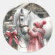 Kleines Mädchen und ihr Pferd Rustikale Weihnachte Runder Aufkleber